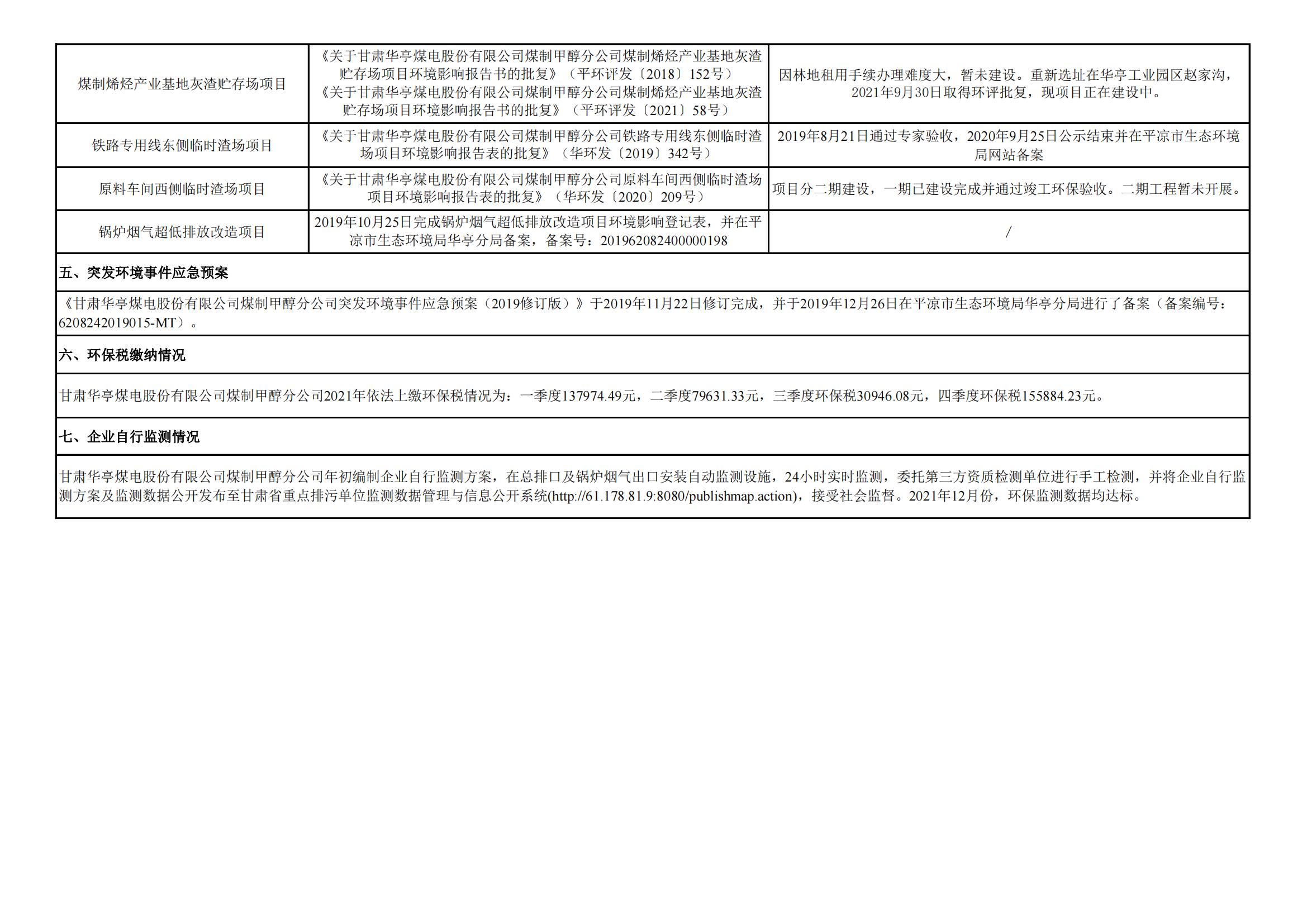 煤制甲醇分公司環(huán)境信息公開(kāi)內(nèi)容(2021年12月)